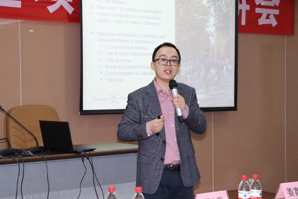 付俊伟副教授对蒂尔堡市和蒂尔堡大学的基本情况作了详细介绍。他提到,蒂尔堡大学由6个公司组成,有来自100多个国家的12399名员工在这里学习。根据2017 年 US News 全球大学排名,蒂尔堡大学的经济学与商科位列全球第 18 位。根据2017 年泰晤士高等教育(THE)世界大学专业排名中,蒂尔堡大学经济学与商科位列全球第 21 位。为了让大家进一步了解蒂尔堡大学,付老师还和大家分享了蒂尔堡大学的宣传片和宣传册。